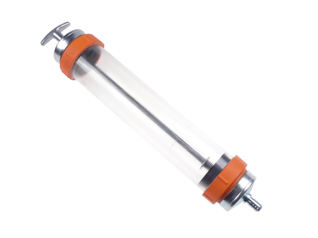 Odsávačka má průhledné tělo z odolného plastu, díky kterému můžete posoudit stav starého oleje a sledovat jeho množství.
