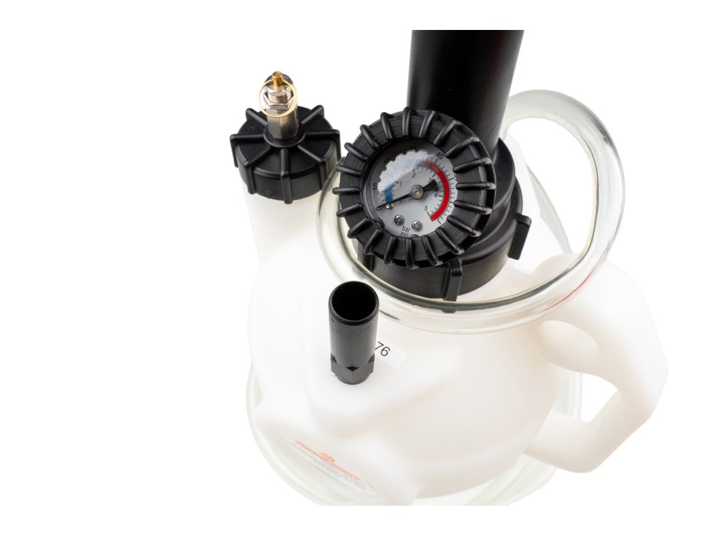 · 4litrová nádoba s ručním pístem a 150 cm plnící hadicí s rychlospojkou na ATF adaptéry