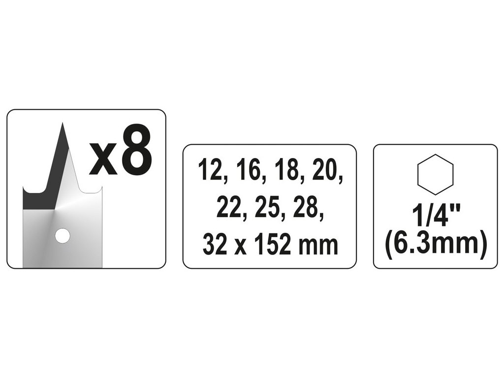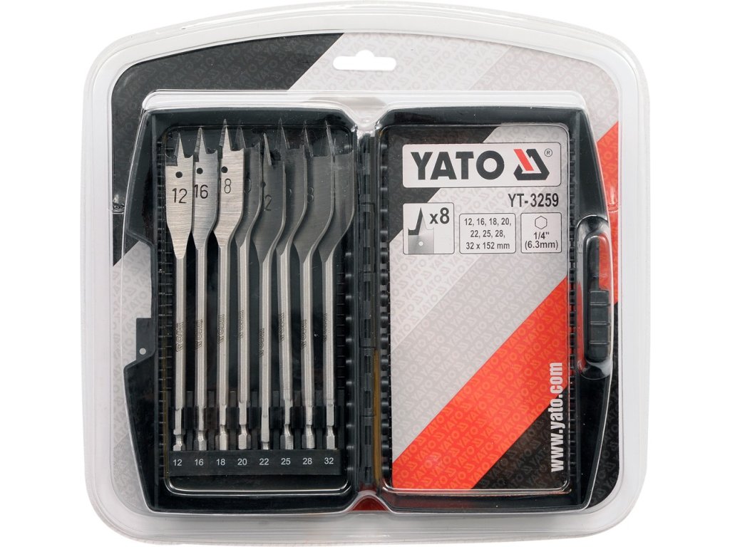 • Vrtáky do dřeva ploché sada 8 kusů Yato 12 - 32 mm