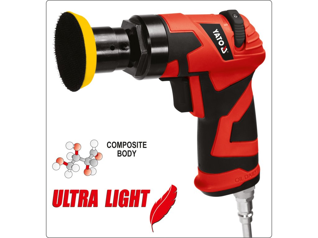Tělo brusky je z lehkého kompozitního materiálu s drobnými rozměry.