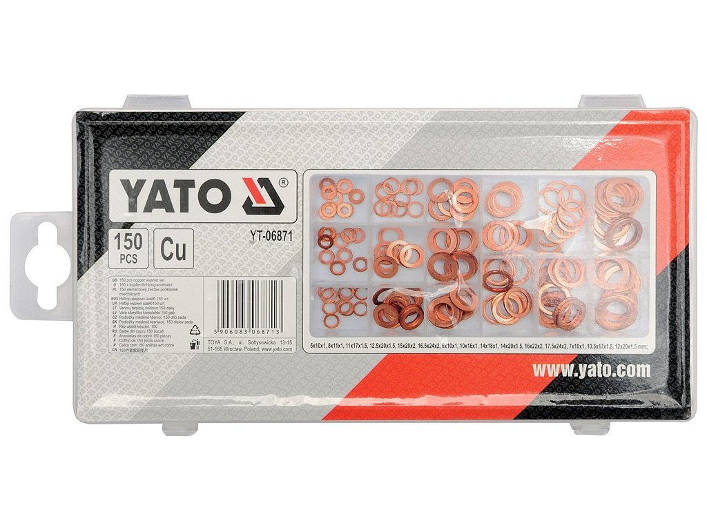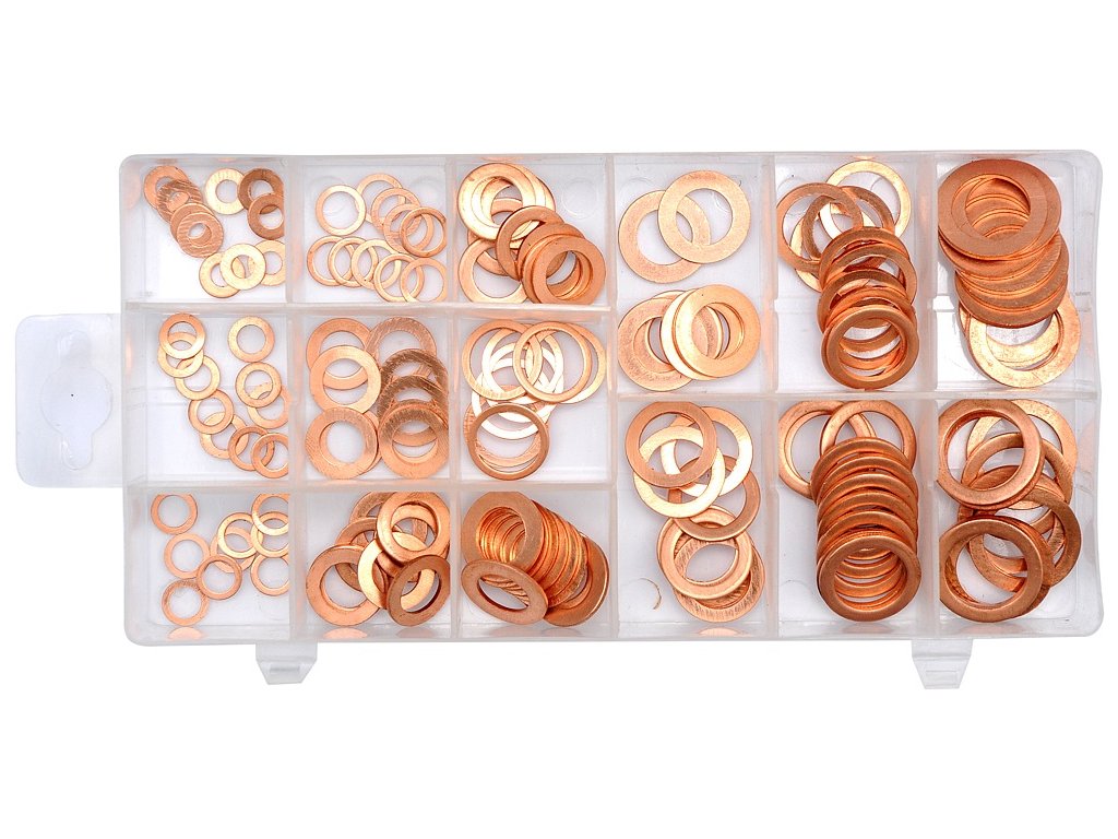 Sada 150 ks těsnicích podložek zhotovených z mědi.