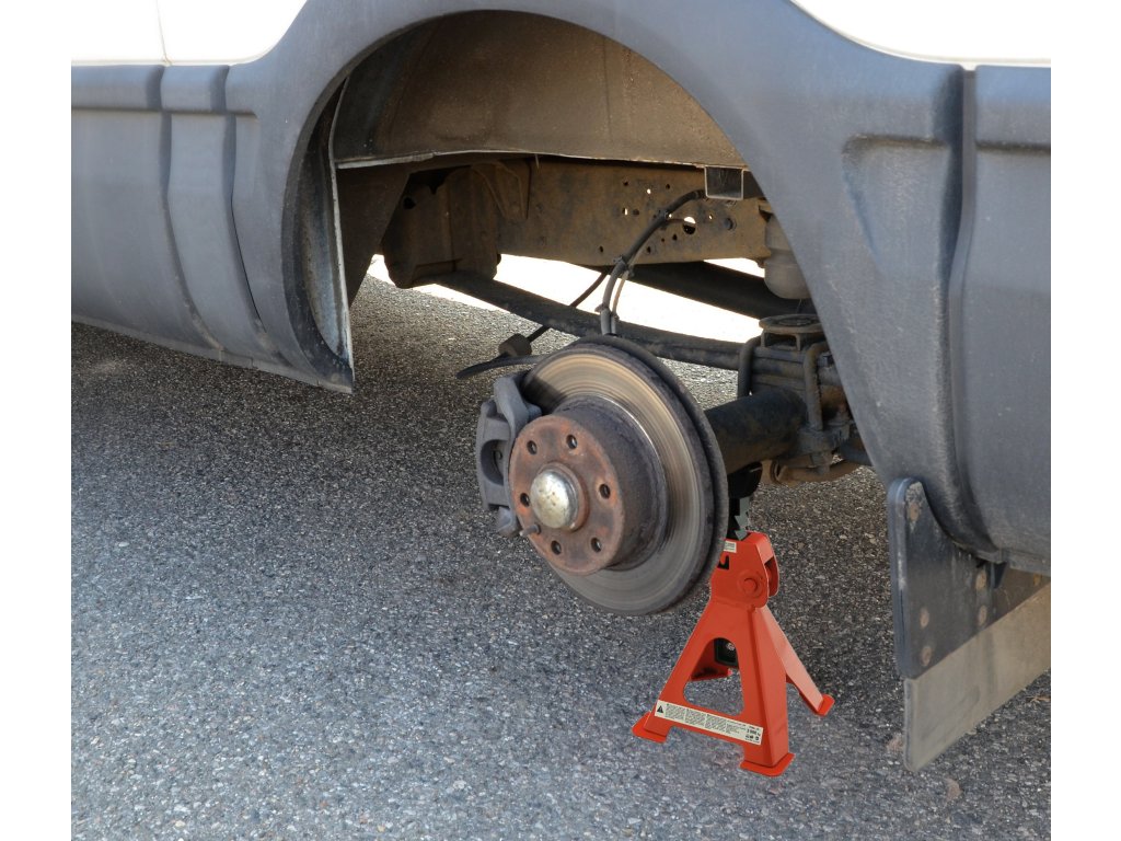 Podpěra pod auto, díky čtyřem nohám je velmi stabilní, má nastavitelnou výšku a je vybavena jistícím mechanizmem.