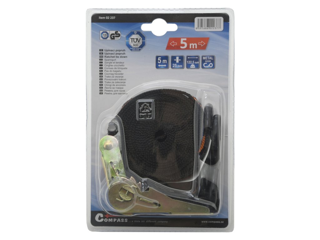 Popruh s ráčnou a háky 5m TÜV/GS