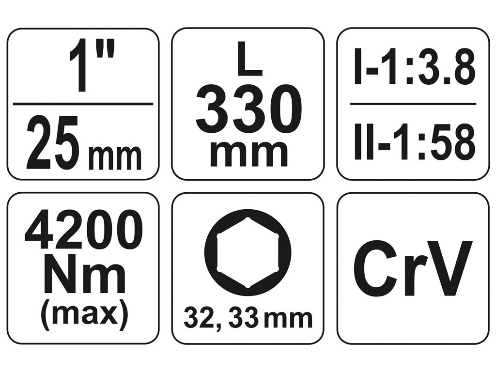 Zesilovač je vyroben z kvalitní CrV oceli délky 330 mm se zakončením 1"(25 mm).