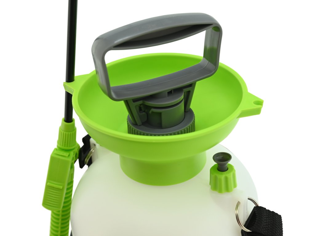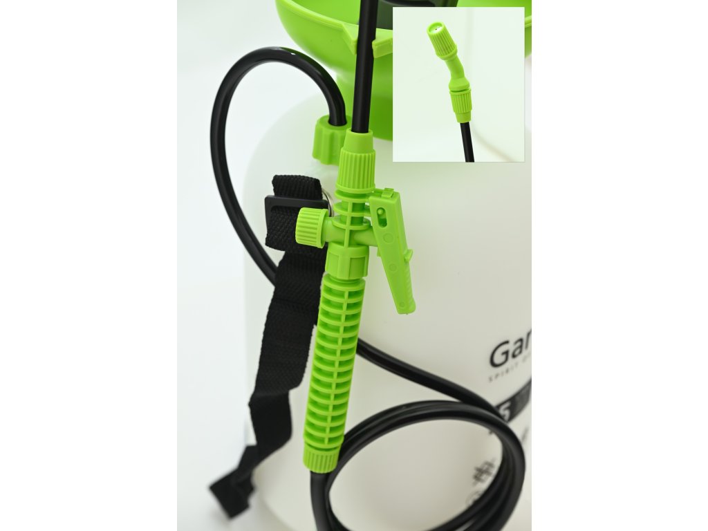 Postřikovač je vybaven kvalitní mosaznou tryskou, která umožňuje plynulou regulaci postřiku od jemné mlhy po přímý proud. Šroubovací uzávěr zajišťuje snadné plnění vodou nebo jinými kapalinami. (Určeno pouze pro vodu a netoxické prostředky na rostliny).