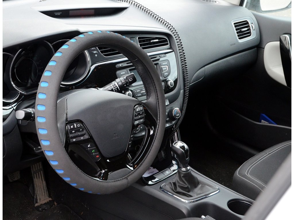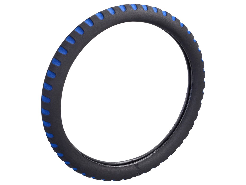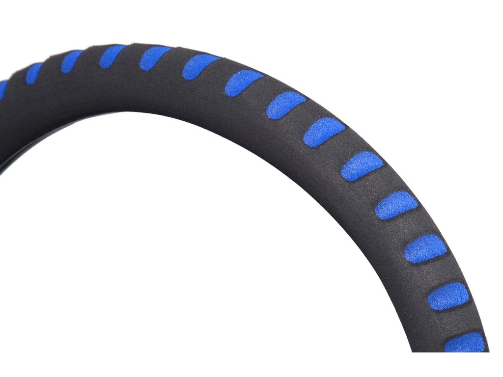 Pěnový potah určený k nasazení na volant o průměru 37-39cm. Příjemný do ruky. Barva černá s modrými prolisy.