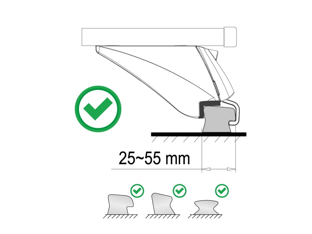 | pro šířku podélného nosiče vozidla | 25 - 55 mm |