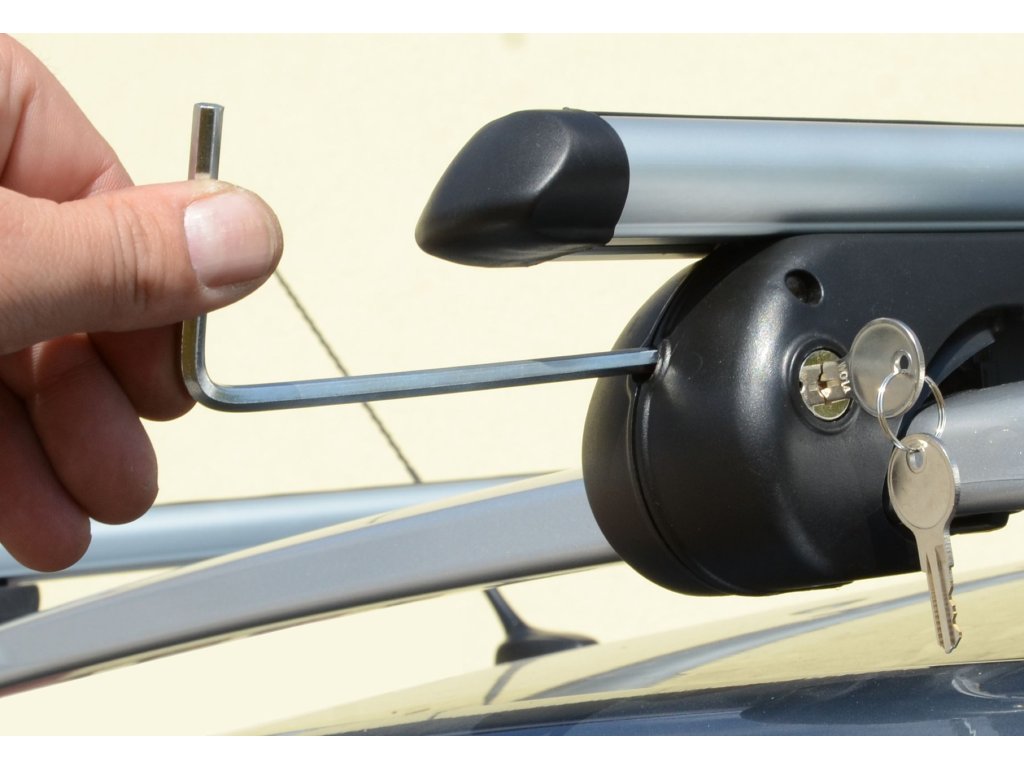 Vyznačuje se snadným upevněním. Stačí jen odemknout a pomocí přiloženého imbusového klíče příčník upnout či povolit.