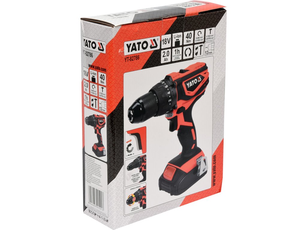 Příklepová AKU vrtačka YATO o síle 18V (max. otáček 1650 za minutu) s vysoce kvalitním pohonem.