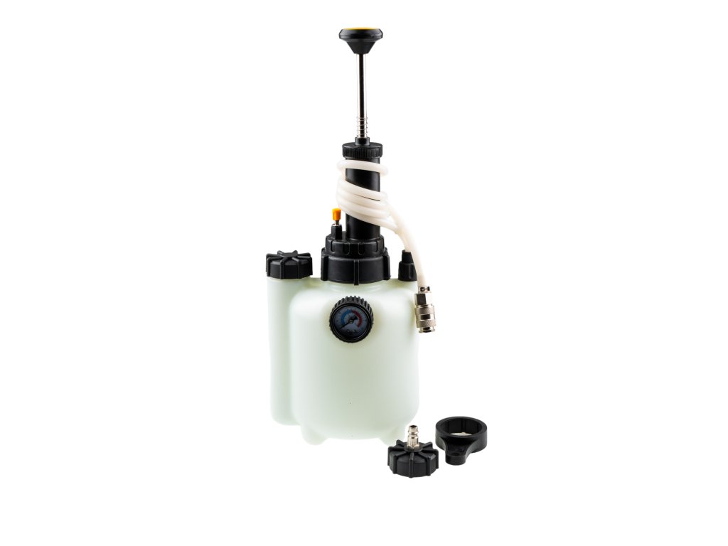 Přípravek na výměnu brzdové kapaliny nebo odvzdušnění brzdové soustavy, případně hydraulické spojky. Ruční pumpička vytvoří v nádobě tlak, který tlačí kapalinu do brzdového či spojkového systému přes nádržku s brzdovou kapalinou. Výměnu tak zvládne jeden mechanik bez pomocníka.