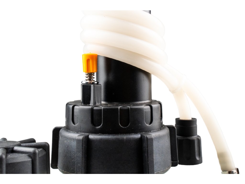 Zásobník má objem 2,5 litru, dokáže tak naplnit brzdový či spojkový systém na jednu náplň bez nutnosti dolévání kapaliny. Po skončení práce lze tlak v nádobě uvolnit stiskem tlačítka na zadní straně.