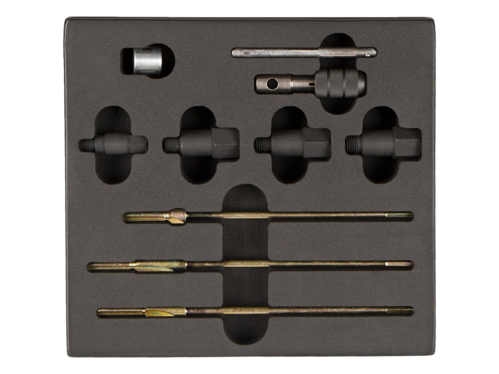 Sada výstružníků M5-M10 a vodicích pouzder na sedla (hnízda) žhavicích svíček, tzv. žhaviček, v pěnové vložce - ASTA A-9GPB Určeno pro snadné a rychlé očištění sedel (tzv. hnízd) žhavicích svíček vznětových – dieselových motorů při demontáži starých a montáži nových. Po jejich očištění dosednou nové žhavičky na místo podstatně lépe. Souprava 9 dílů obsahuje: 4x vodicí pouzdro na výstružník: M8x1.0 mm; M10x1.0 mm; M10x1.25 mm; M12x1.25 mm 3x výstružník: M6-M8; M8-M10; M5-M7 1x rukojeť výstružníku 1x vodicí přípravek Kvalitní produkt: vyrobeno z chrom-molybdenové (Cr-Mo) oceli S45C.Doplňkové parametry