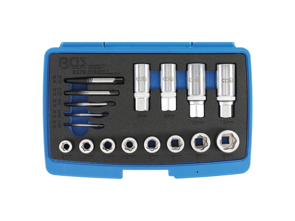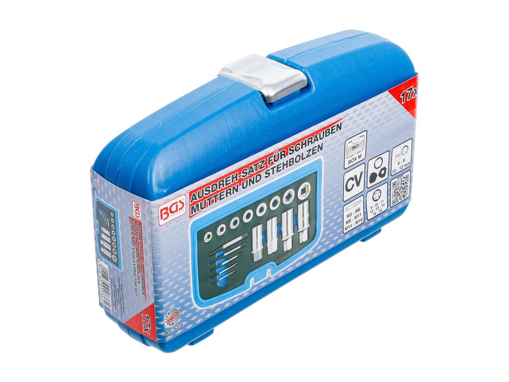 Přípravky na povolení poškozených matic 9-19 mm a zalomených šroubů, sada 17 ks - BGS 8378