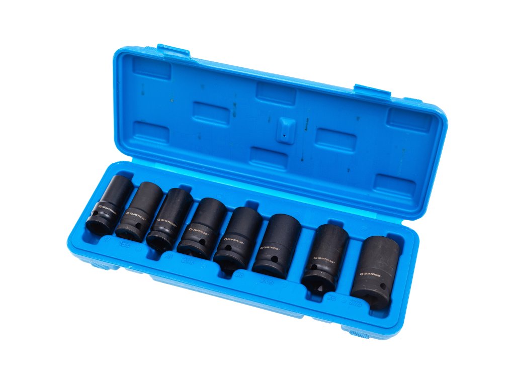 Sada přípravků na poškozené šrouby a matice, 17-28 mm, 8kusová, v plastové kazetě – QUATROS QS50477