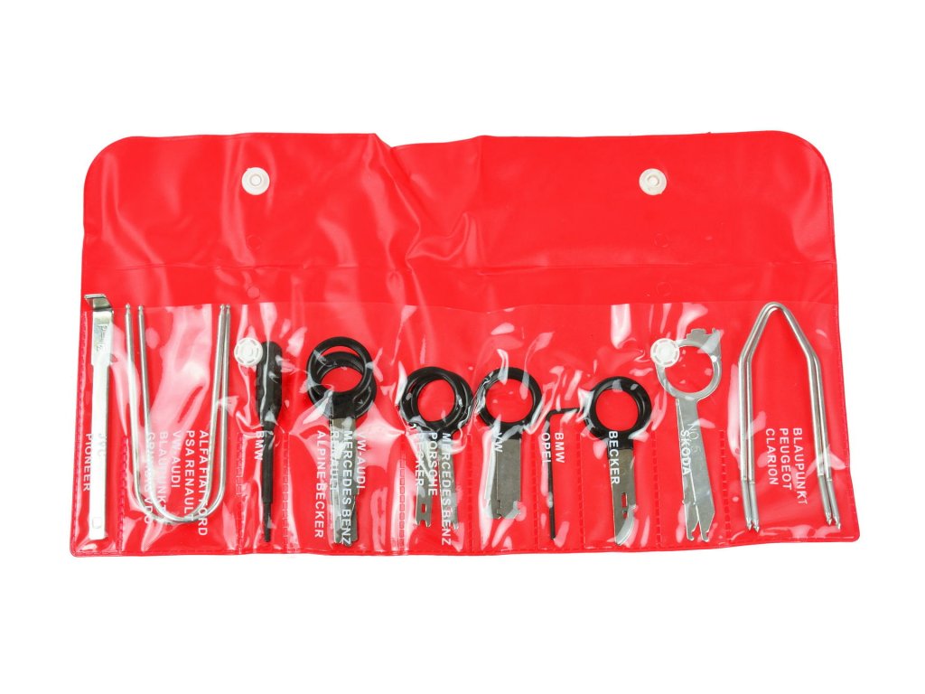 Praktická sada přípravků pro demontáž značkových a originálních autorádií.