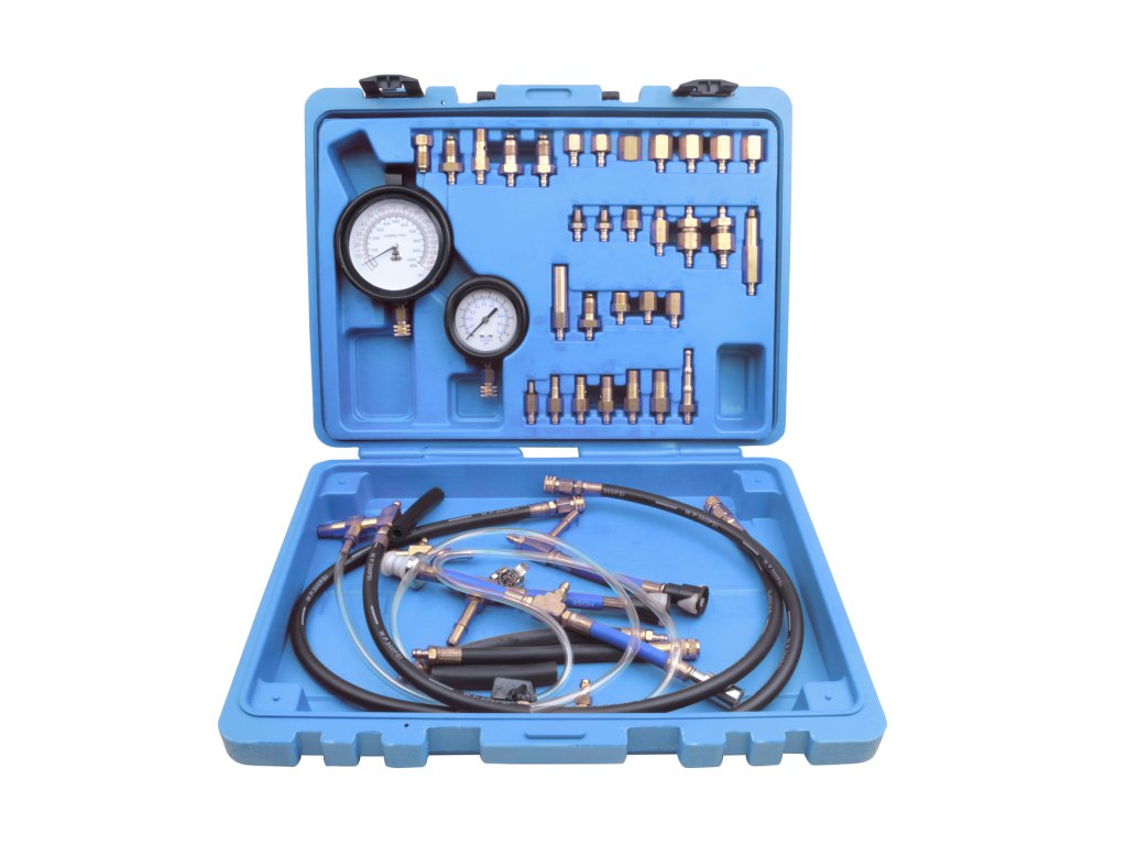 Přístroj pro měření nízkého i vysokého tlaku palivového systému koncipovaný pro systémy vstřikování benzínu většiny evropských, asijských i amerických automobilů (jednobodové i vícebodové vstřikování, mechanické i elektronické vstřikovací systémy) tvoří v plastovém kufru 2 tlakoměry, příslušná rychlospojková připojení, sada hadic se spojkami a velmi obsáhlá sada připojovacích adaptérů.
