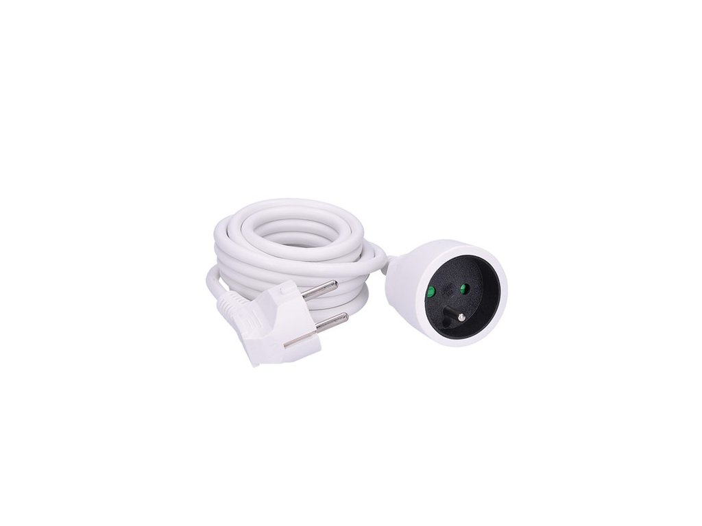 Prodlužovací kabel – prodlužovačka s 1 zásuvkou, délka 3 metry, bílá barva – SOLIGHT PS03 Klasická prodlužka pro použití ve vnitřních prostorách (garáže, dílny, kanceláře, domácnost apod). 3metrová délka je ideální pro prostory, kde není zdroj elektrické energie příliš vzdálený a bylo by zbytečné použití delších prodlužovaček. Vybaveno lomenou vidlicí. Technická data: Napájení: 230 V/10 A Průřez vodičů: 3 x 1 mm2 Typ kabelu: H05VV-F3 Max. zátěž: 250 V~ / 10 ADoplňkové parametry