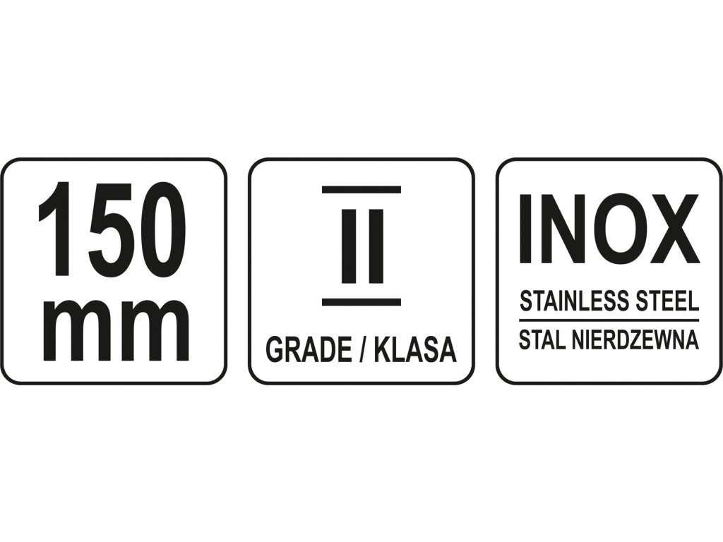 Pružné pravítko s přesností třídy II. Vyrobeno z nerezové oceli.