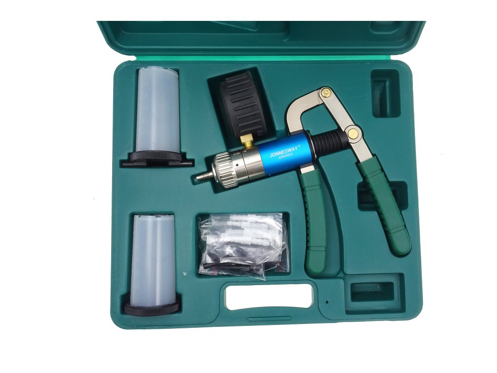 Ruční tlaková/podtlaková pumpa pro výměny kapalin a testování vakua (podtlaku), univerzální, s příslušenstvím, v kufříku – JONNESWAY AI040031
