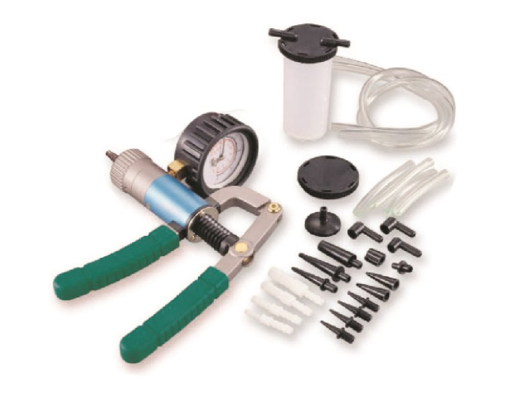 Sada pro testování tlaku a podtlaku např. u podtlakového magnetického ventilu, MAP senzorů, palivové nádrže apod. Set obsahuje přesný manometr pro testování a servis mnoha různých tlakových systémů v automobilech. Umožňuje odvzdušnit brzdy a testovat podtlakové systémy v automobilech. V soupravě s potřebným příslušenstvím.