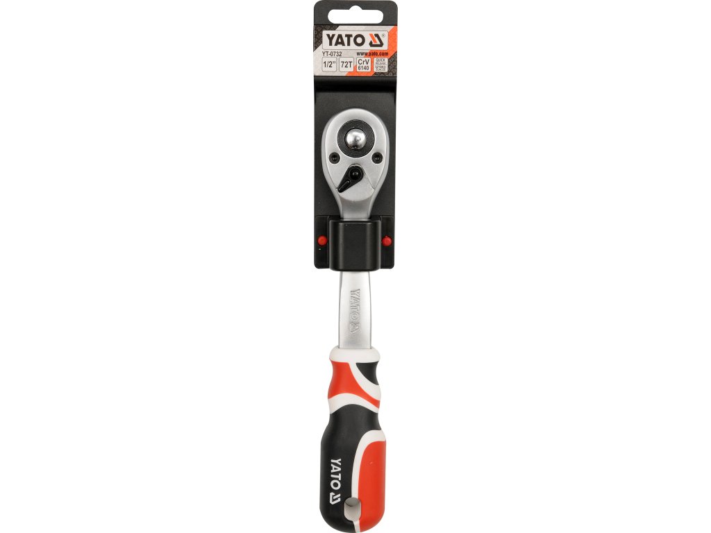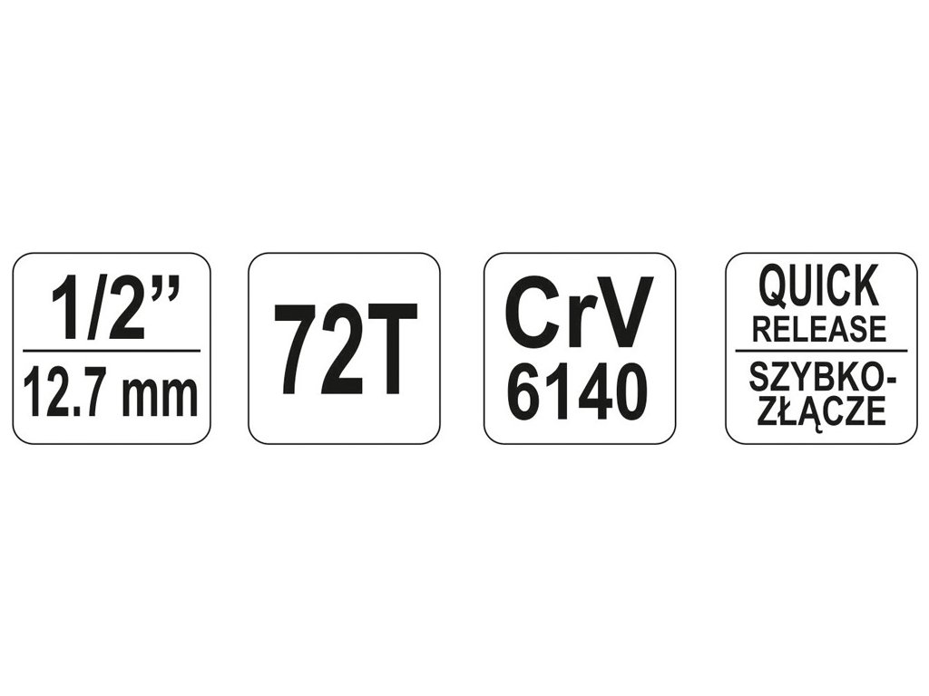 Ráčna je opatřena přepínací páčkou a jemným chodem zajištěným 72 zubým mechanismem.