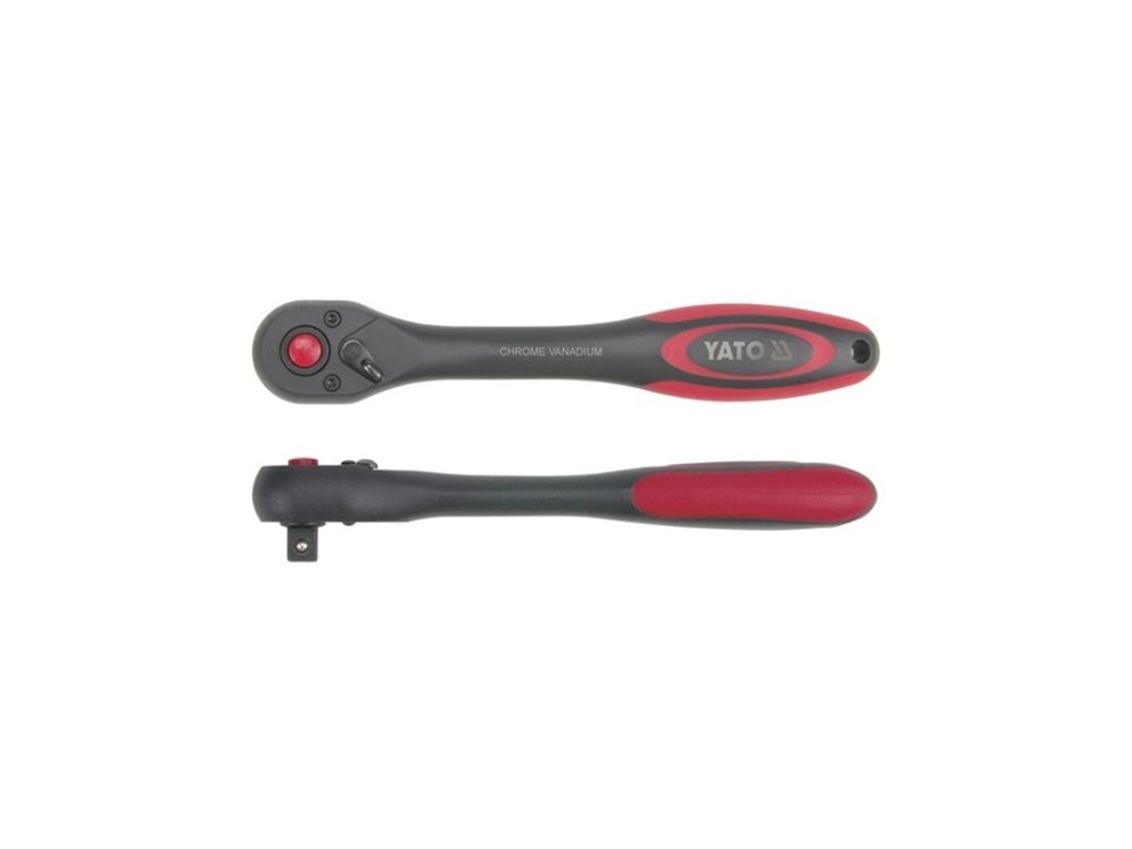 Ráčna s plastovou rukojetí 1/4"(6,3mm) s přepínací páčkou, délka 144mm, ráčnový mechanismus s 72 zubu, vyroben z kvalitní chromvanadiové slitiny oceli CrV6135 splňující normou DIN3122.