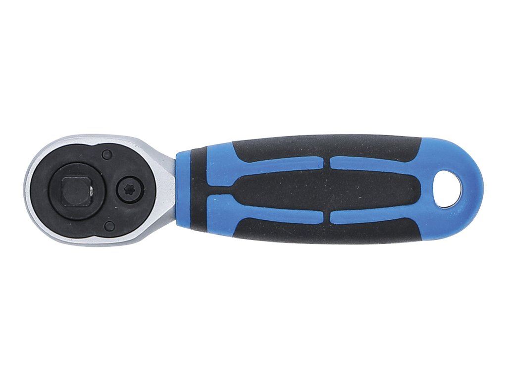 Kompaktní ráčna určená pro uchycení bitů s vodicím šestihranem rozměru 1/4". Směr chodu se přepíná páčkou v hlavě nástroje.