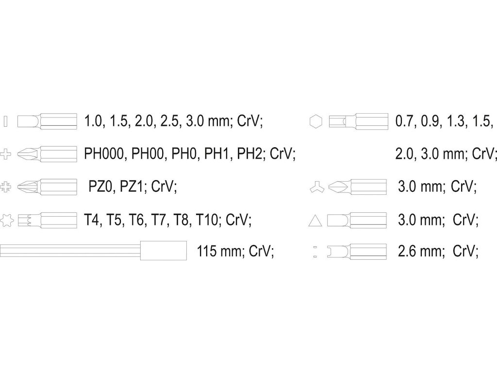 - bit Torx T4; T5; T6; T7; T8; T9; T10