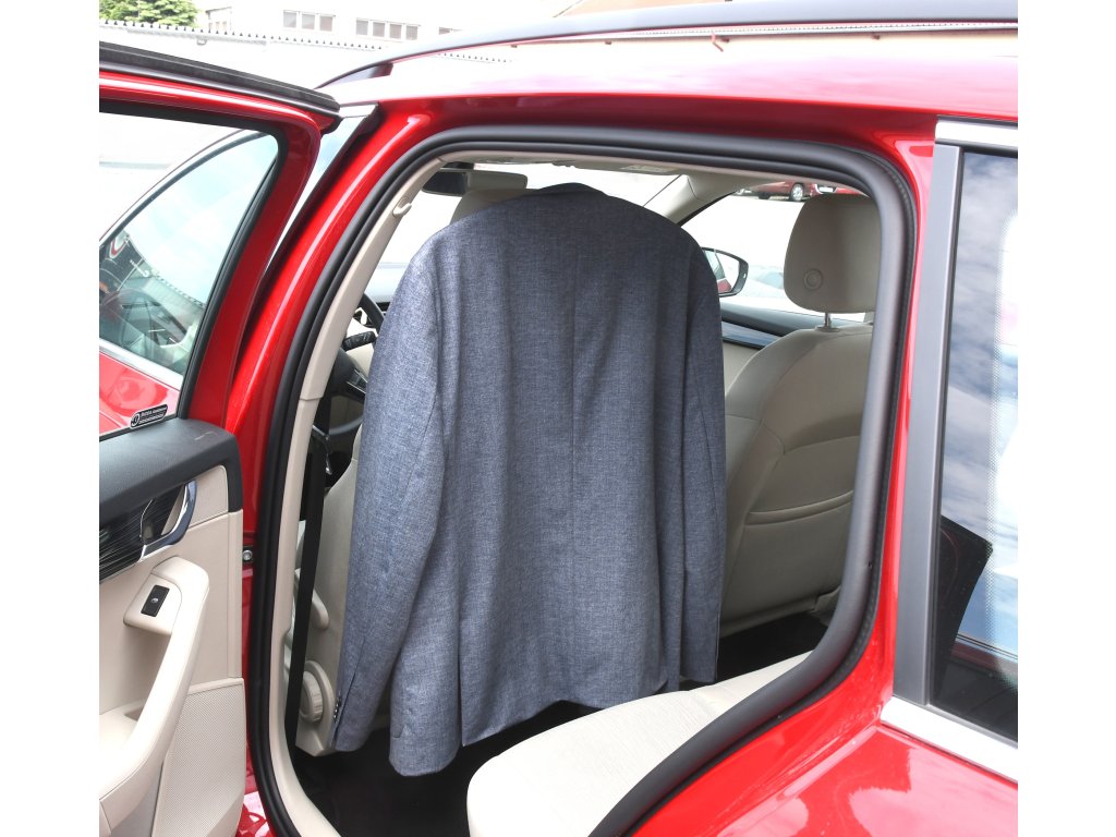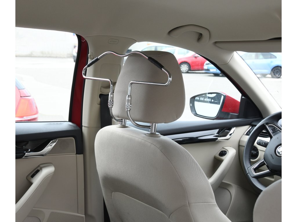 Univerzální ramínko na oděvy k připevnění na zadní stranu opěrky hlavy předního sedadla automobilu.