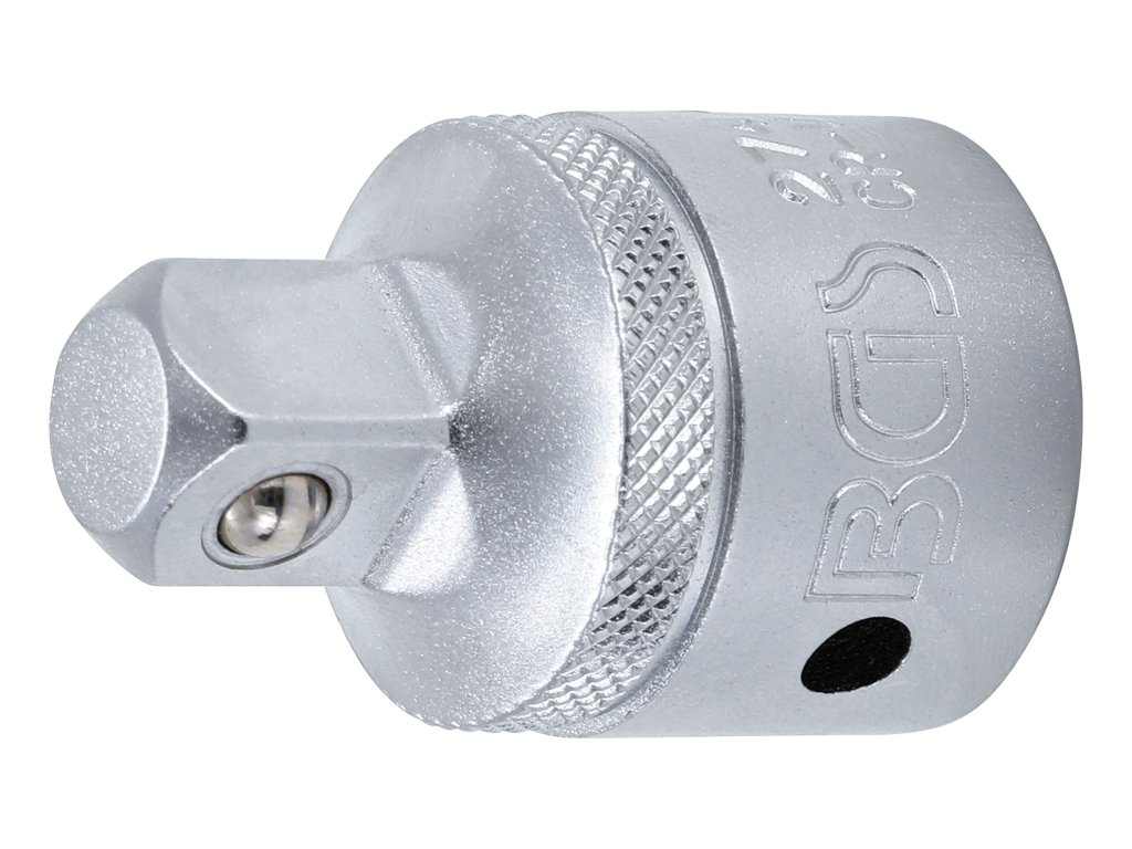 Redukce, tzv. adaptér 4hranný 3/4“ samice x 1/2“ samec – BGS technic 274 Upravuje rozměr vodicího 4hranu ráčny z většího na menší. Kvalitní provedení: vyrobeno z chrom-vanadové (Cr-V) oceli, povrch je pochromovaný.Doplňkové parametry