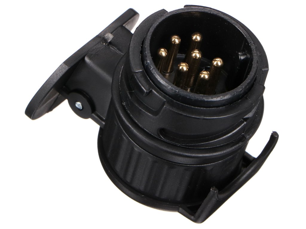 Univerzální adaptér pro zásuvku se 13 póly – redukce na 7 pólů pro zástrčku přívěsu nebo nosiče kol, pro napětí 12–24 V.