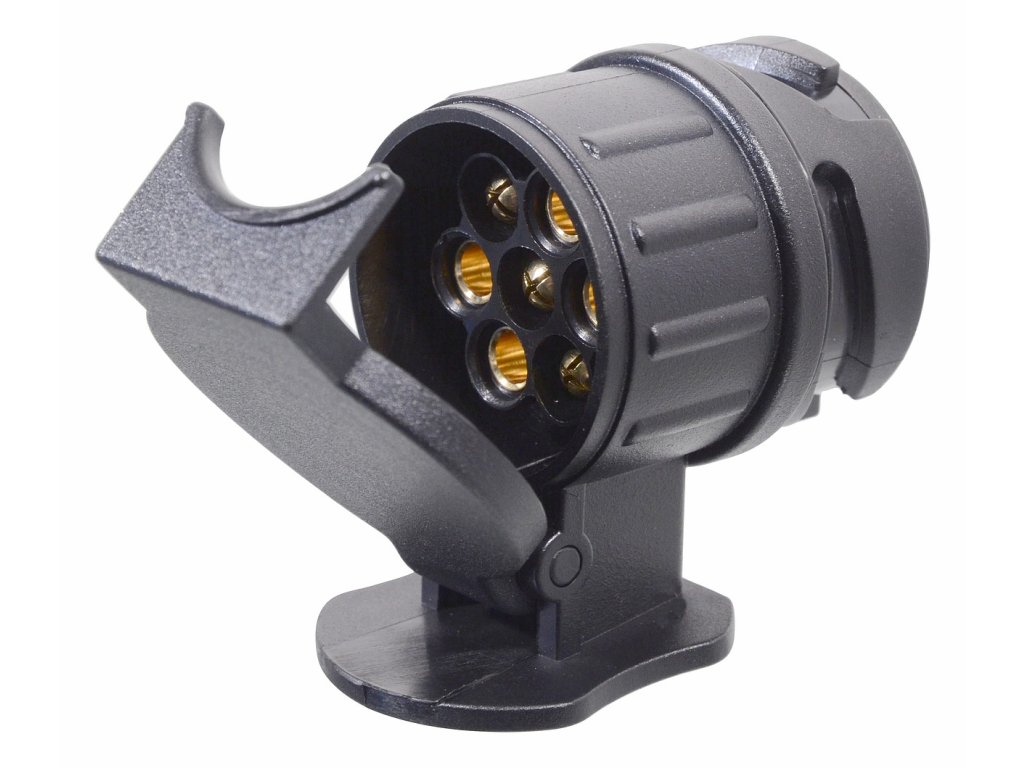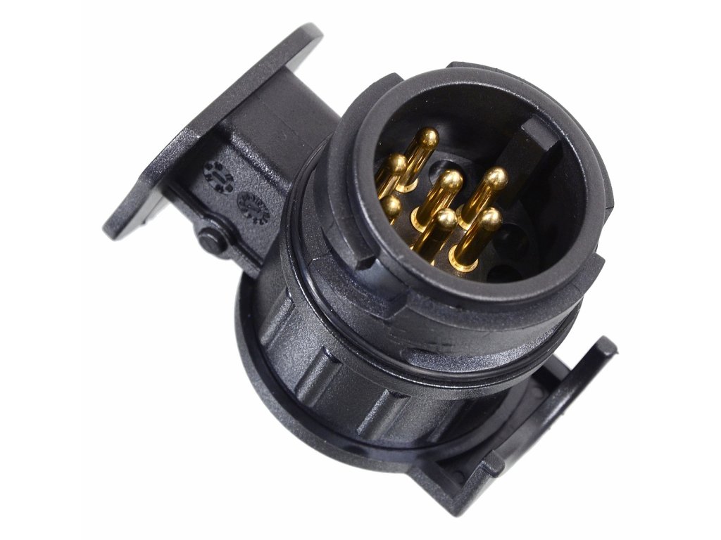 Plastový adaptér (redukce), který umožňuje zapojení elektroinstalace vozidla s přívěsným vozidlem, pokud mají rozdílné konektory.