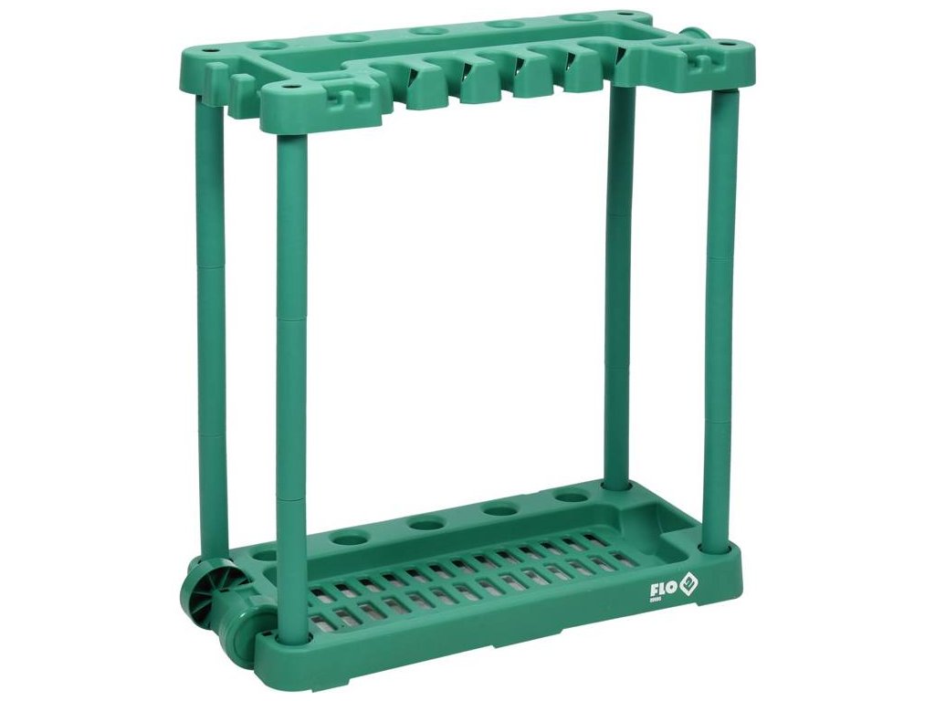 Praktické řešení pro uložení dlouhého zahradnického nářadí jako jsou motyky, lopaty, vidle, ale i drobného ručního nářadí nebo prodlužovaček. Přední rukojeti umožňují uložení nářadí hlavou směřující dolů, takže nepřidávají na hmotnosti stojanu.