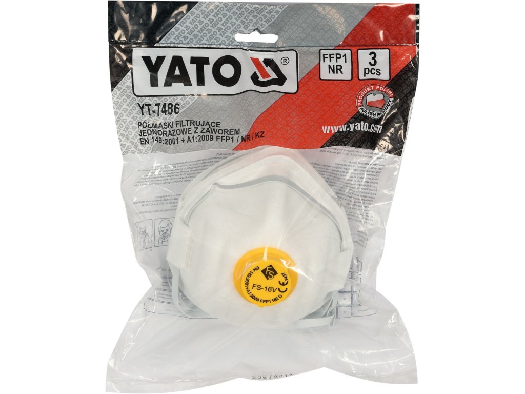 Filtrační protiprašná maska opatřená zpětným ventilem s třídou ochrany P1 podle normy EN 149: 2001.