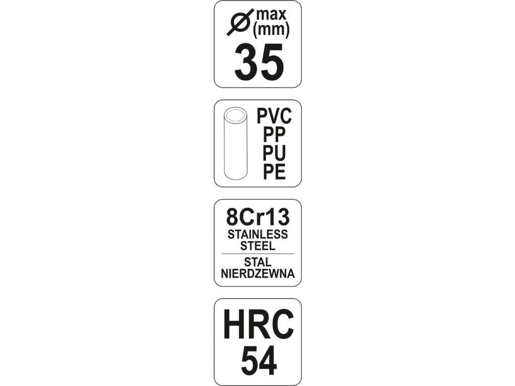 Instalatérské nůžky, pro řezání plastových trubek do průměru 35 mm.