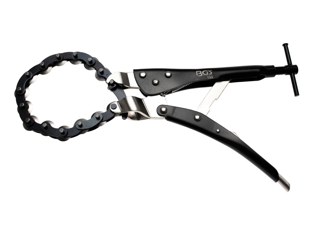 Řezák na výfuky a potrubí s řetězem délky 250 mm, pro max. průměr 85 mm – BGS technic 133