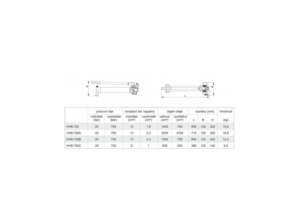 Ruční hydraulická pumpa dvourychlostní, tlak 20 bar, velký objem oleje - HHB-700