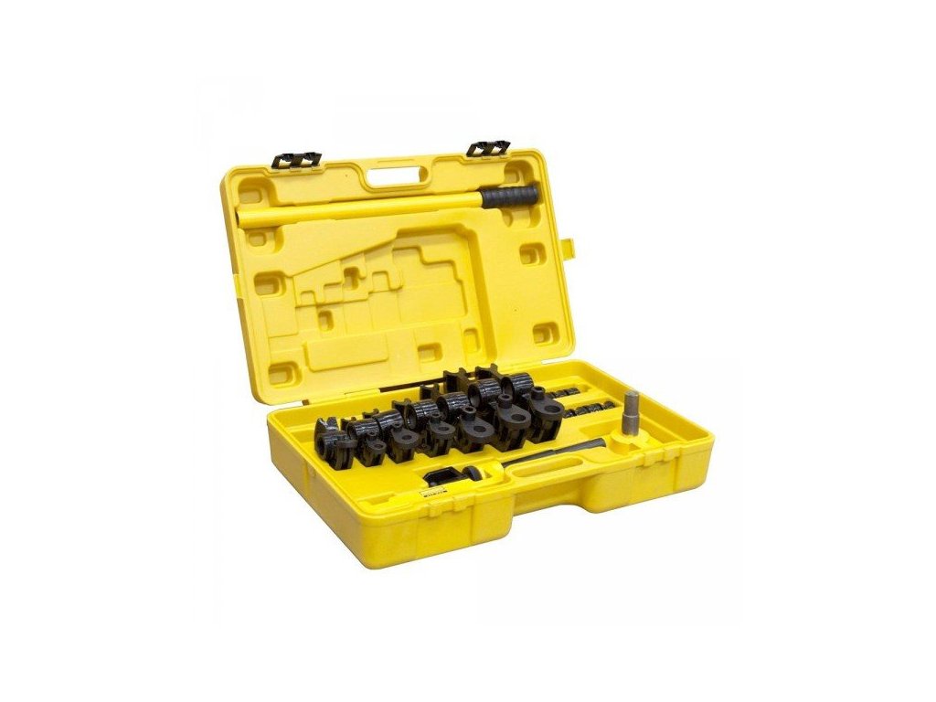· skládá se z pákové ohýbací jednotky (k instalaci na pracovní stůl apod.), páky a sady ohýbacích opěrek/matric