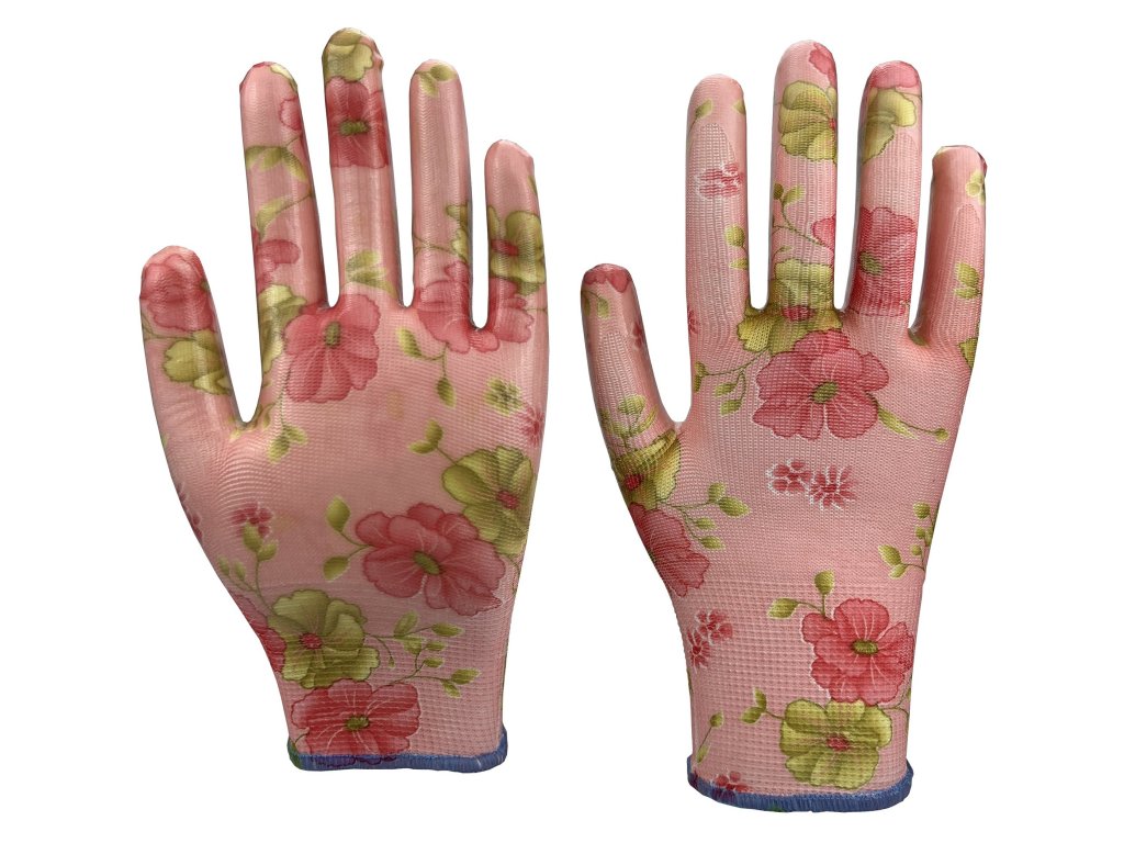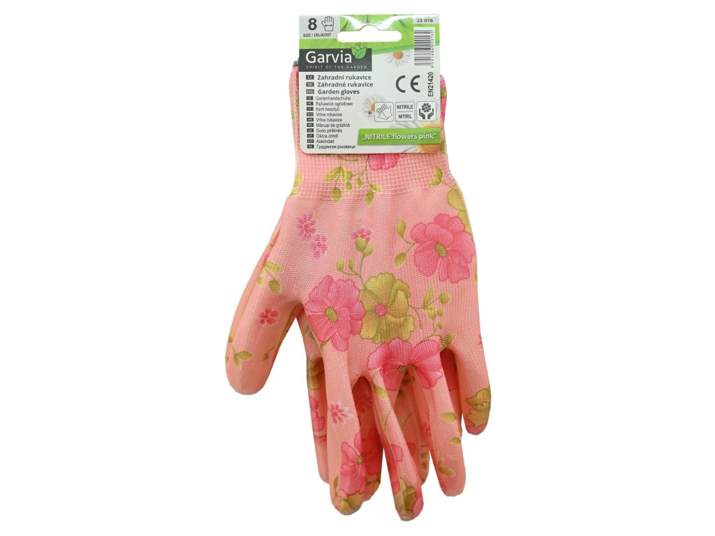 Rukavice zahradní vel. 8 NITRILE flowers pink