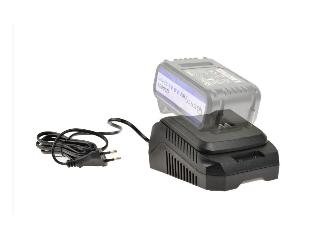 Rychlá nabíječka (tzv. rychlonabíječka) pro Li-ion akumulátory GEKO G80602 Přístroj využitelný především s akumulátorovým nářadím značky GEKO. Umožňuje rychlé nabití baterií a jejich opětovné zařazení do práce – na nabití není nutné čekat i několik hodin. Stav nabíjení je přehledně zobrazen pomocí dvou diod – červená / zelená. Série GEKO OnePower: jedna nabíječka pro všechny druhy baterií značky GEKO. Technická data: Napájení: 230V / 50Hz Výstupní napětí: 21V Výstupní proud: 2.2A Maximální spotřeba energie: 60W Doba nabíjení: 60 - 90 min.Doplňkové parametry