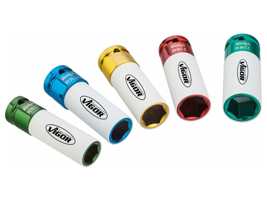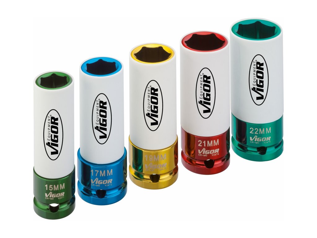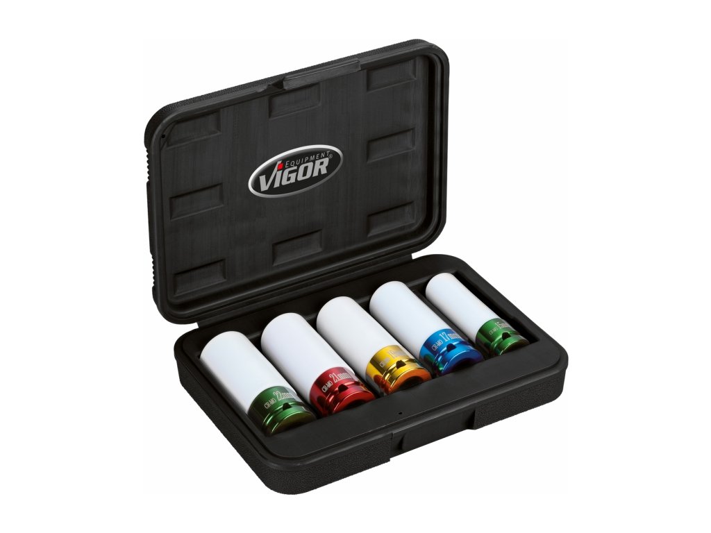 Sada 1/2" nástrčných hlavic s krytkou na ALU pro rázové utahováky, sada 5ks - Vigor V2257
