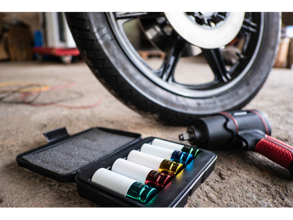 Ty jsou v provedení s ochranným potahem, který zabraňuje poškození hliníkových disků při utahování kolových šroubů pneumatickým utahovákem.