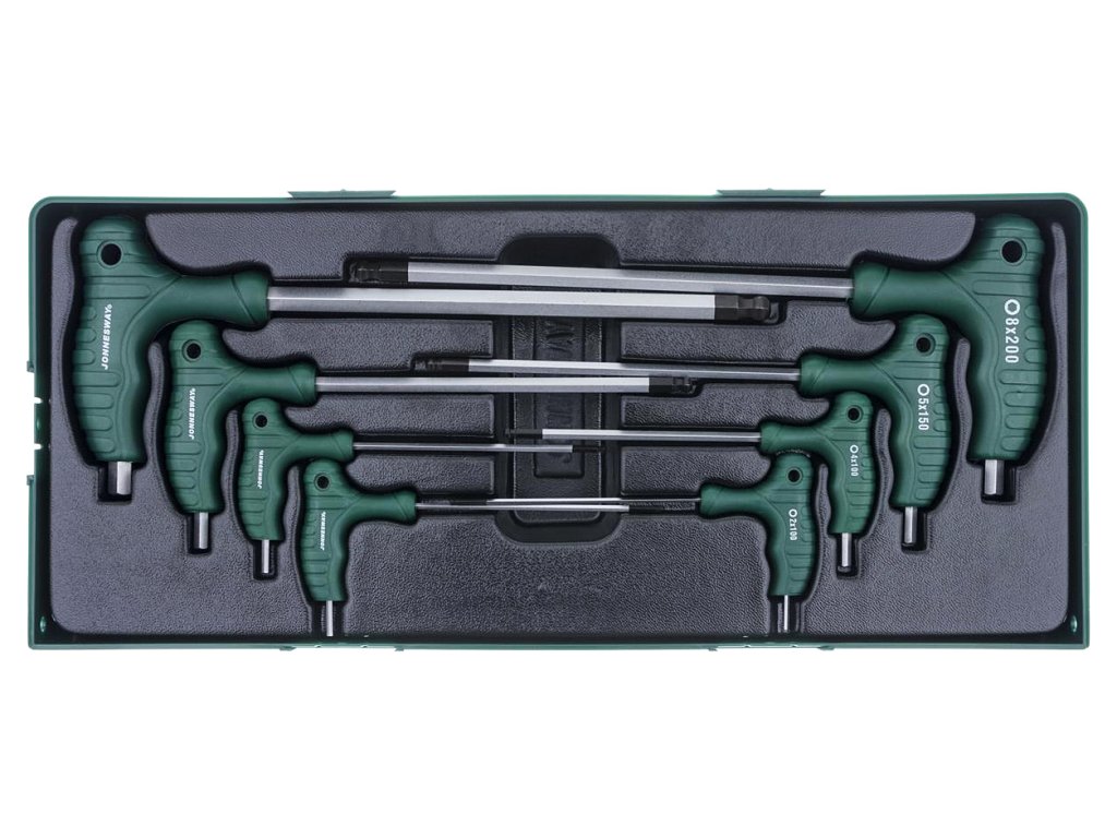 Plastové ergonomické rukojeti ve tvaru T pro pohodlnou práci. Delší konce jsou s kuličkou. Profesionální kvalita – chrom-vanadiová ocel, delší konce černěné.