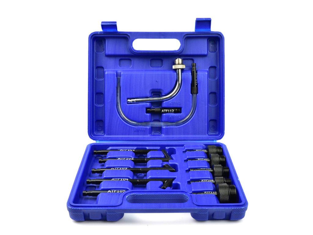 Sada speciálních adaptérů pro výměnu a doplňování oleje v automatických převodovkách nejoblíbenějších značek osobních vozidel. Sada se skládá ze 13 adaptérů, které umožňují provozovat převodovky různých značek osobních automobilů.