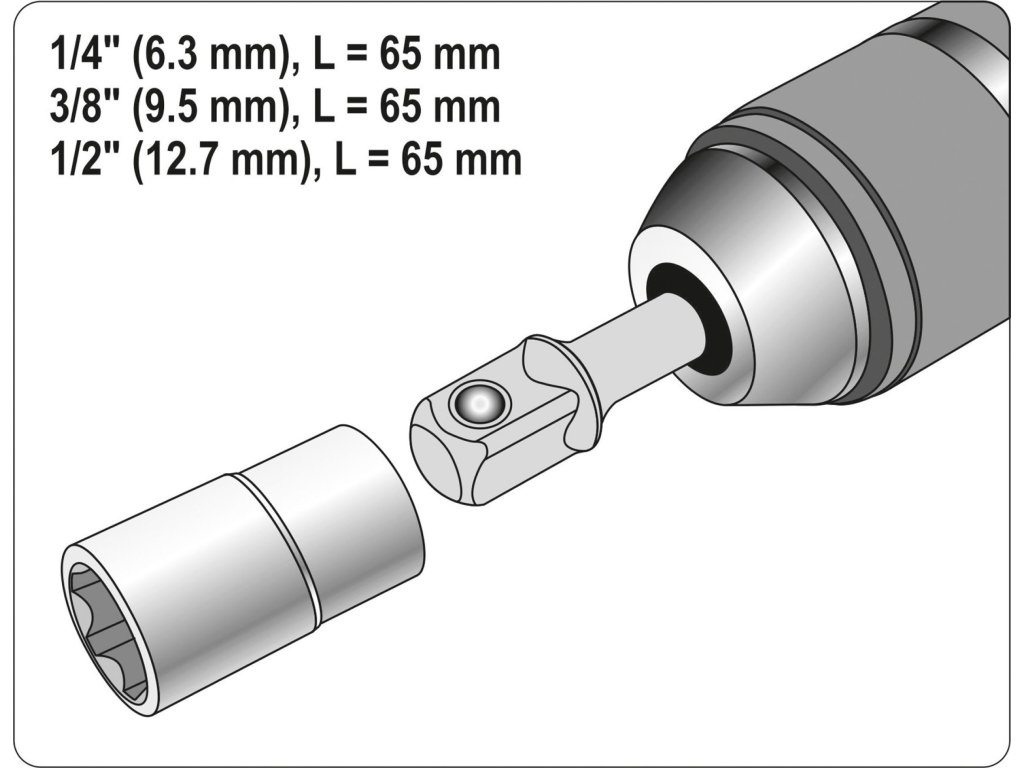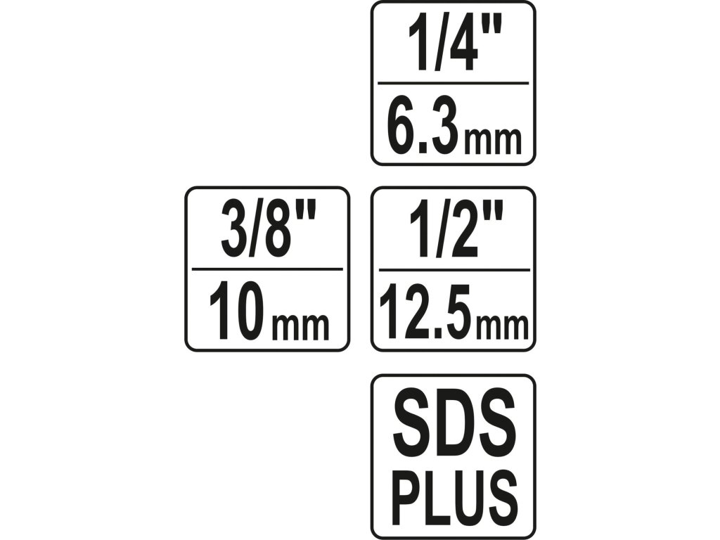 Adaptér pro vrtačky SDS-plus se zakončením s rozměry 1/4", 3/8" a 1/2".