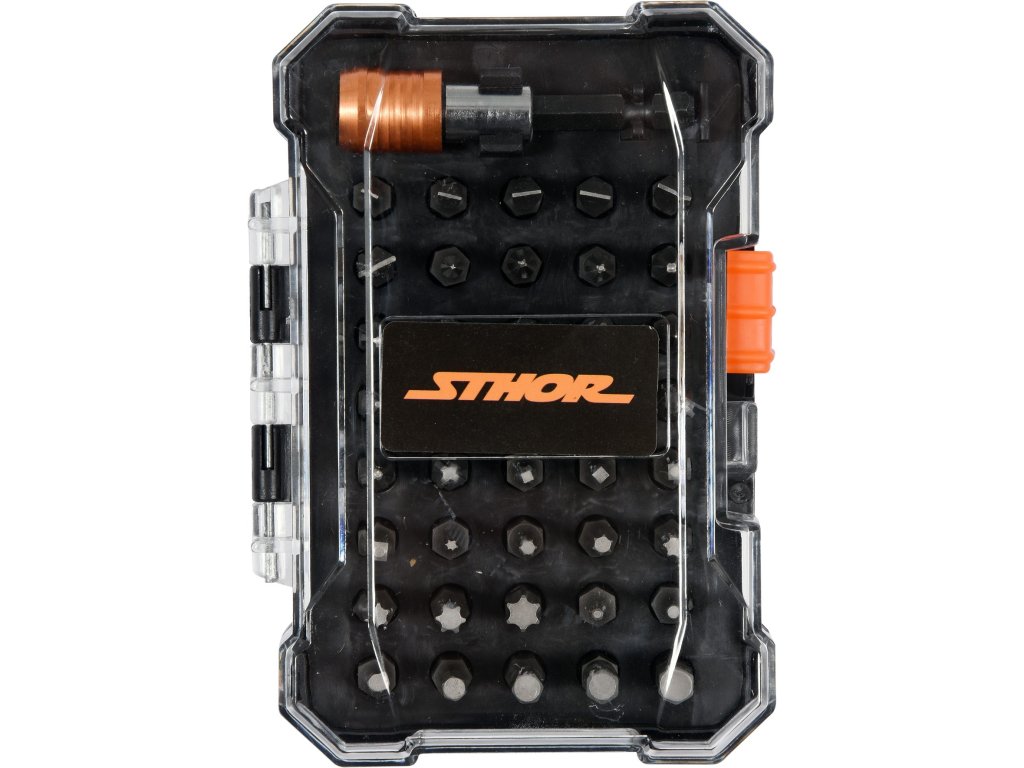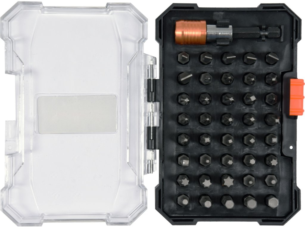 Jednotlivé bity jsou vyrobené z kvalitní CRV oceli. Sada je uložena v přehledném plastovém pouzdře.
