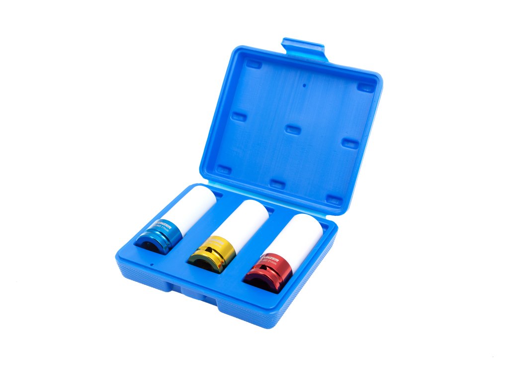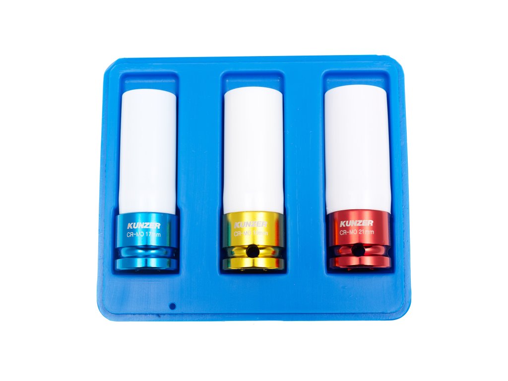 Úderové hlavice na (ALU) hliníkové disky s ochrannou krytkou, velikosti 17/19/21 mm, sada 3ks, v plastovém pouzdru – Kunzer 7RK03