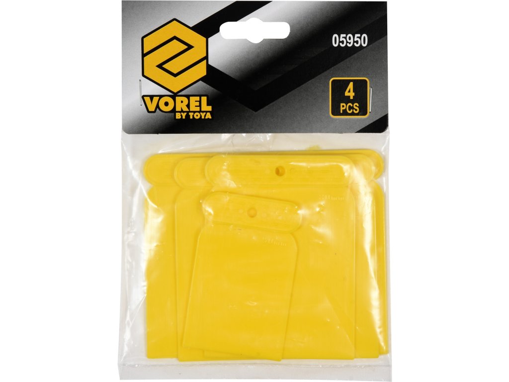 Sada se skládá ze 4 ks odolných a ohebných špachtlí s šířkou 5; 7,5; 10 a 12 cm.