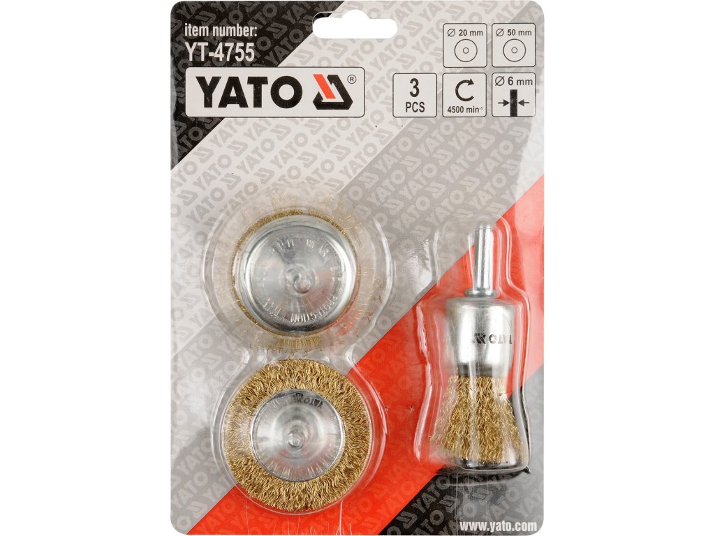 Sada kartáčů drátěných s nástavcem do vrtačky 3 ks pomosazený drát