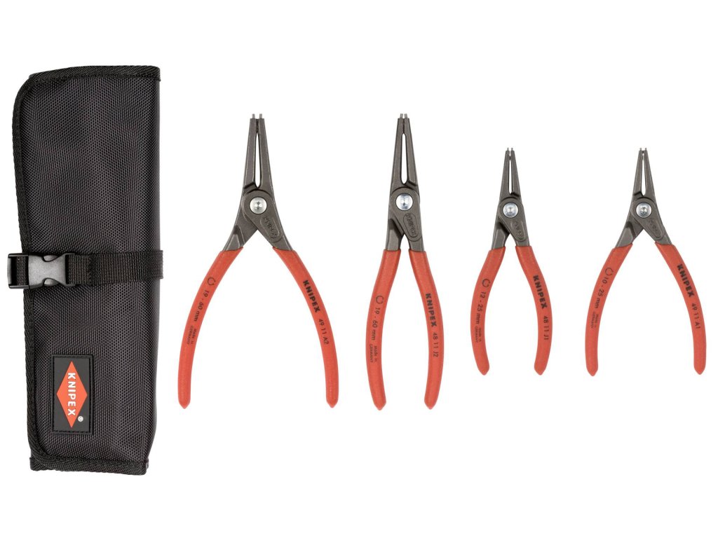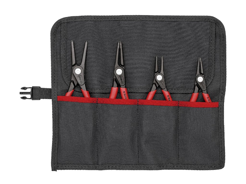 Kleště na pojistné kroužky („segrovky“), vnější i vnitřní, sada 4 ks kleští v textilním organizéru – KNIPEX 00 19 57